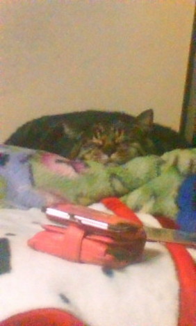 その寝姿は、日本の山脈―――。 うちには個性派な3匹いるんですが、 その内のデブネコ担当です。(担当ではないですが・・・) お腹の肉が超気持ちいいとんちゃん! (手前のは避け忘れた財布です。)