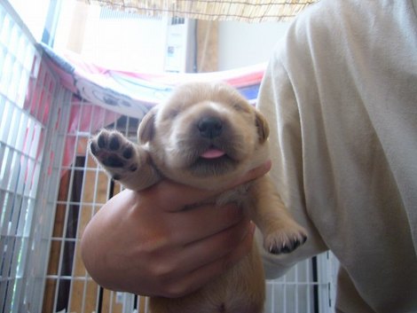 我が家のゴールデンレトリバーが子供を産んだときの写真です。まだ目も開いていません。舌が出ているところがチャーミングです☆
