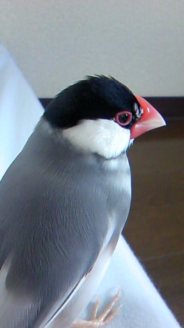 こんなに男らしい桜文鳥、なかなか珍しいと思います! いいシャッターチャンスをねらいとりました イケメンですね!