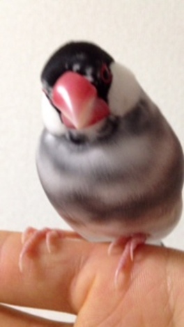 いつもはおとなしく写真を撮らせてくれないのに、なぜかこの日は、指の上にじっと座って、おすましした顔で写真におさまりました(^。^)