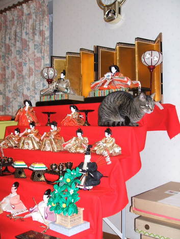 チビもやっぱり女の子。華やかなひな人形に憧れたのかな?