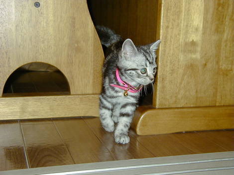 生後3ヶ月の頃です。家に来たばかりで好奇心旺盛です。現在10歳ですが、大きさはあまり変わらず小さくてかわいいです。