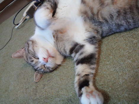 我が家のアイドルモフちゃんです。 気持ち良さそうに寝ている所を撮影しました★ 性格は温厚で、新しく家族になった子猫ちゃんと仲良く遊んでくれます。 いつまでも元気でいてね。