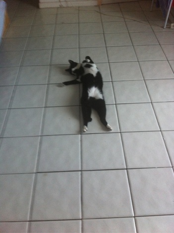 夏になると死んだようにタイルに転がりおなかを出して寝ています。 のどが乾くとお水をせがんで水道から出るお水を飲むのが嬉しいようでゴロゴロと鳴いているちょっと変わったネコ