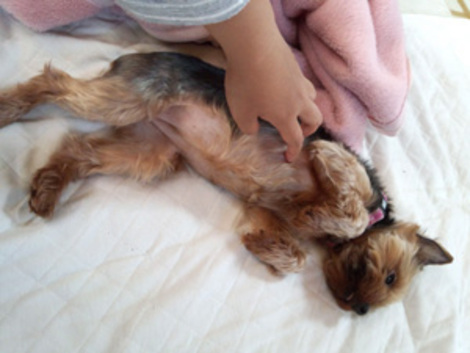 我が家の愛犬ハッピーはすごい甘えたで、いつも擦り寄ってきます。 撫でているといつの間にかお腹を上にして、撫でろアピールをしてきます。そんな彼女は我が家では人気者です!