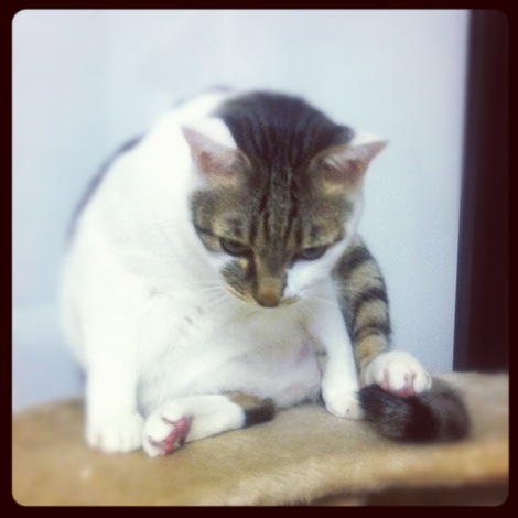 意味は、ネコのがんちゃん。です。