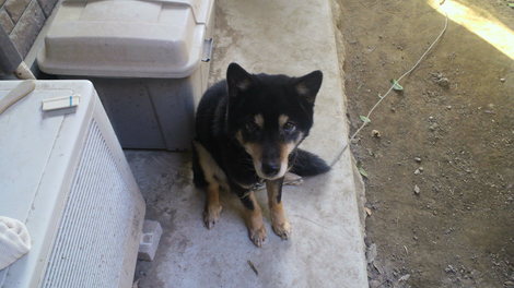 なかなかカメラの方を向いてくれなかったのですが、がんばって、こっちを振り向かせて写真を撮りました。うちの犬、名前はコロです。