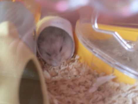 トイレットペーパーの芯で遊んでて、疲れて芯の中に顔をうずめて眠っちゃいました(笑) 狭いところで眠るのが大好きなハムちゃん