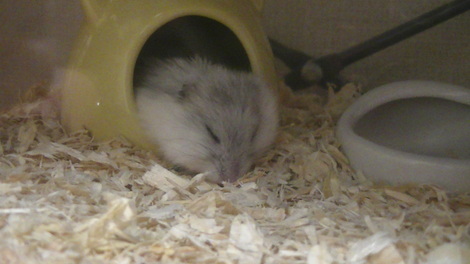 ハムちゃんは部屋の中から顔を出して涼んでて、眠っちゃいました。