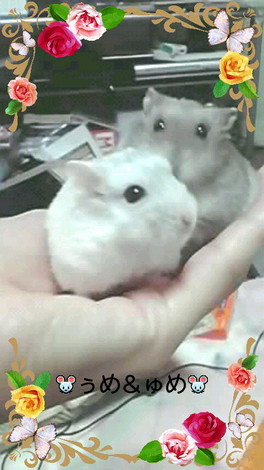 2匹ともジャンガリアンで対照的な性格。ケンカをするのでなかなか2匹を一緒に写真撮ることができず。 たまたま撮れた1枚です。
