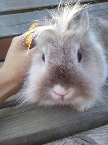 我が家のアイドル! オスうさぎが多い中、唯一の女の子。そして母親でもあるんです。 チャームポイントは泥棒ヒゲとかっちょいいリーゼント。 今年に入り、うさんぽデビュー致しました。最近は天気が悪かったりして行けてませんが。 これはその時の一枚。
