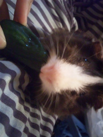 我が家の食いしん坊代表! 野菜だいすき!ご飯の時間になったら鳴いてアピっちゃうモルモットさん! しゃりしゃりしゃりしゃり……本当美味しそうに食べてくれます。 この子のお腹はほんっとーに、触り心地満点!ぷにっぷになんです!