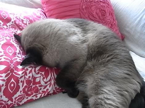 クッションに顔を埋めて寝るうちの子・・・苦しくないのかなー?