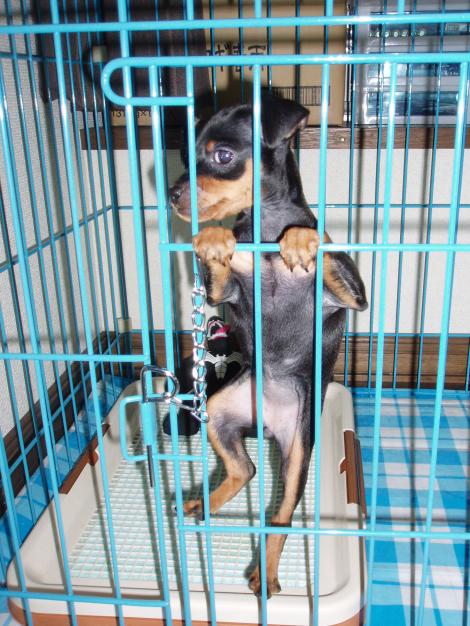 まだ我が家に来てから一週間くらいの時の写真です。小さいのにゲージから出たくて一生懸命です。