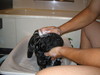 黒パグのオス。キマリと申します。写真では、気持ちよさげな顔をしておりますが、実はお風呂が嫌いでございます。吠えたりはしませんが、暴れます。笑 そして、キマリ用お風呂として使用しているのが実は、ベビーバスなのです。これがまた、丁度良いサイズでキマリにピッタリなのでございます。 バスタブの中にお湯を入れると更にキマリは嫌がります。手がお湯につかるのが嫌みたいですね。片方ずつ上げて、無駄な抵抗を繰り返すという。笑 まぁ〜そんなトコも愛らしく憎めないキマリくんでした。