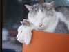 親子で無理矢理キャットタワーにおさまっているのですが、上で気持ち良さそうに寝ている親猫とは裏腹に、下敷きになっている息子はかなり迷惑そう・・・。 でも、親猫の気持ちもわかるなぁ。だって猫布団は気持ちいいんだもん♪
