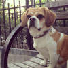今日一緒にお散歩に行った時の写真です。晴れた日のお散歩は気持ちがよく、公園のベンチに座っていたら横に座ってきました。思わず一枚、かわいいです。