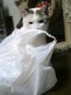 どこにでもある白いカサカサ袋、 やっぱり猫は袋が好き♪ ただしミルクに限っては、 遊ぶよりも入る方が良いみたい☆